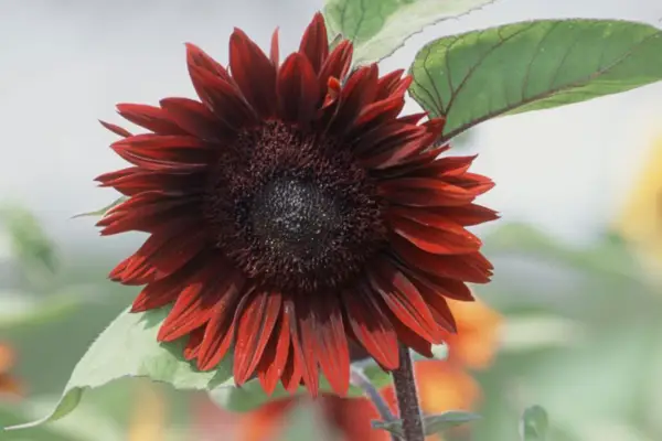 Helianthus Annuus 'Moulin Rouge' porta insolite fioriture rosse scure con un centro marrone scuro. È ideale per crescere verso il centro del confine erbaceo e non richiede picchettamento. Cresci a fianco di altri girasoli a fiore di Ylow per un effetto drammatico o usa nella patch di talee.