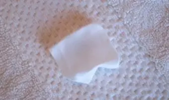 - Misura l'area danneggiata che riparerai, compreso qualsiasi tessuto logoro vicino al foro. Aggiungi un pollice alle dimensioni che hai trovato e taglia due pezzi di tessuto decorativo di queste dimensioni. Taglia anche due pezzi di interfaccia alle stesse dimensioni.