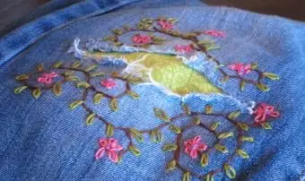 - Infila l'ago con il colore o i colori desiderati del filo da ricamo e usa punti decorativi per fissare la toppa all'oggetto che stai riparando. Puoi cucire un grazioso zig-zag, creare ghirigori o onde o creare un motivo di fiori e viti. Qualunque cosa tu scelga, cuci in diversi punti intorno al foro per assicurarti che la toppa sia sicura.